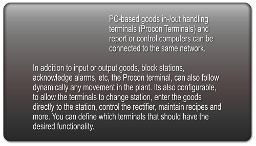 Many configurations can, by qualified personnel, be changed directly inside Procon.These changes can normally be done during system operation.Procon is a completely open system and can be optimized and modified by authorized personnel at the end user.This option may be blocked if so desired.
