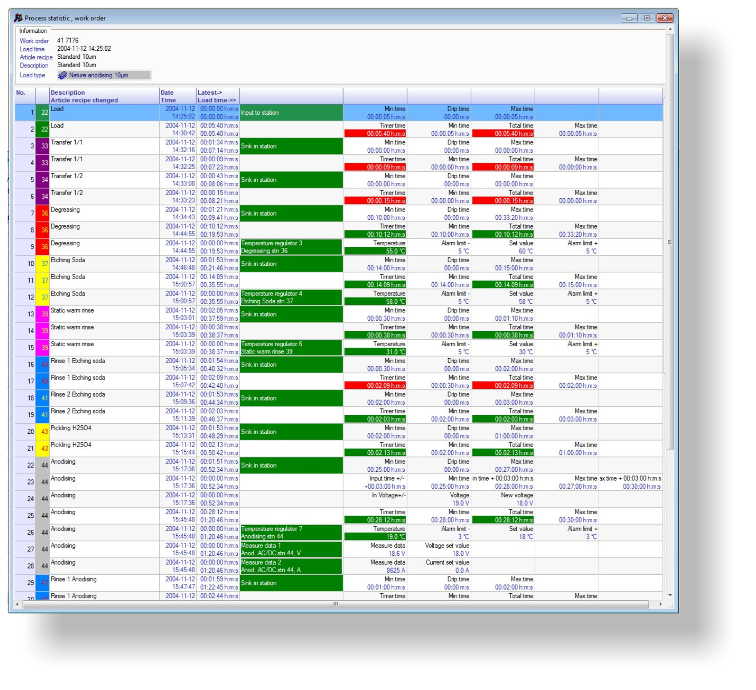 voltages, currents, temperatures etc., in all bath for an article. Both
