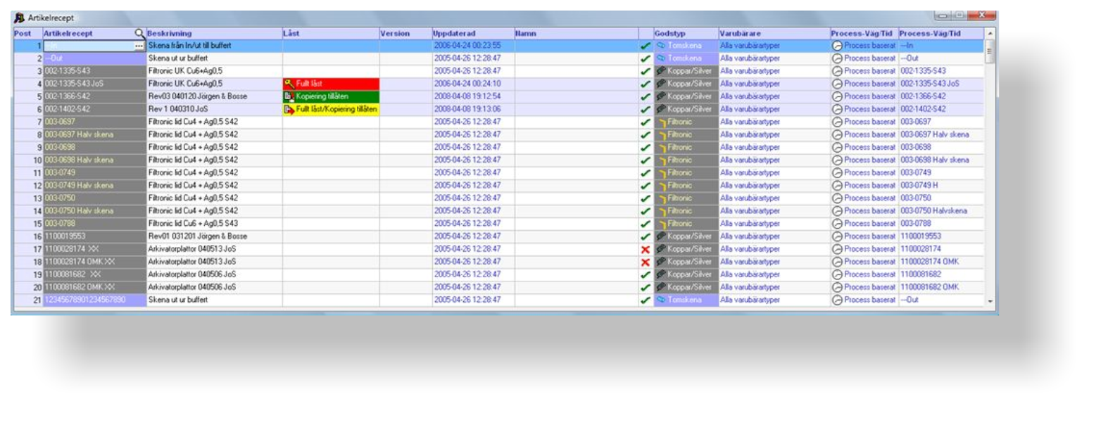Logikrecept med godtyckligt uppsättningsbara transportörsoperationer i