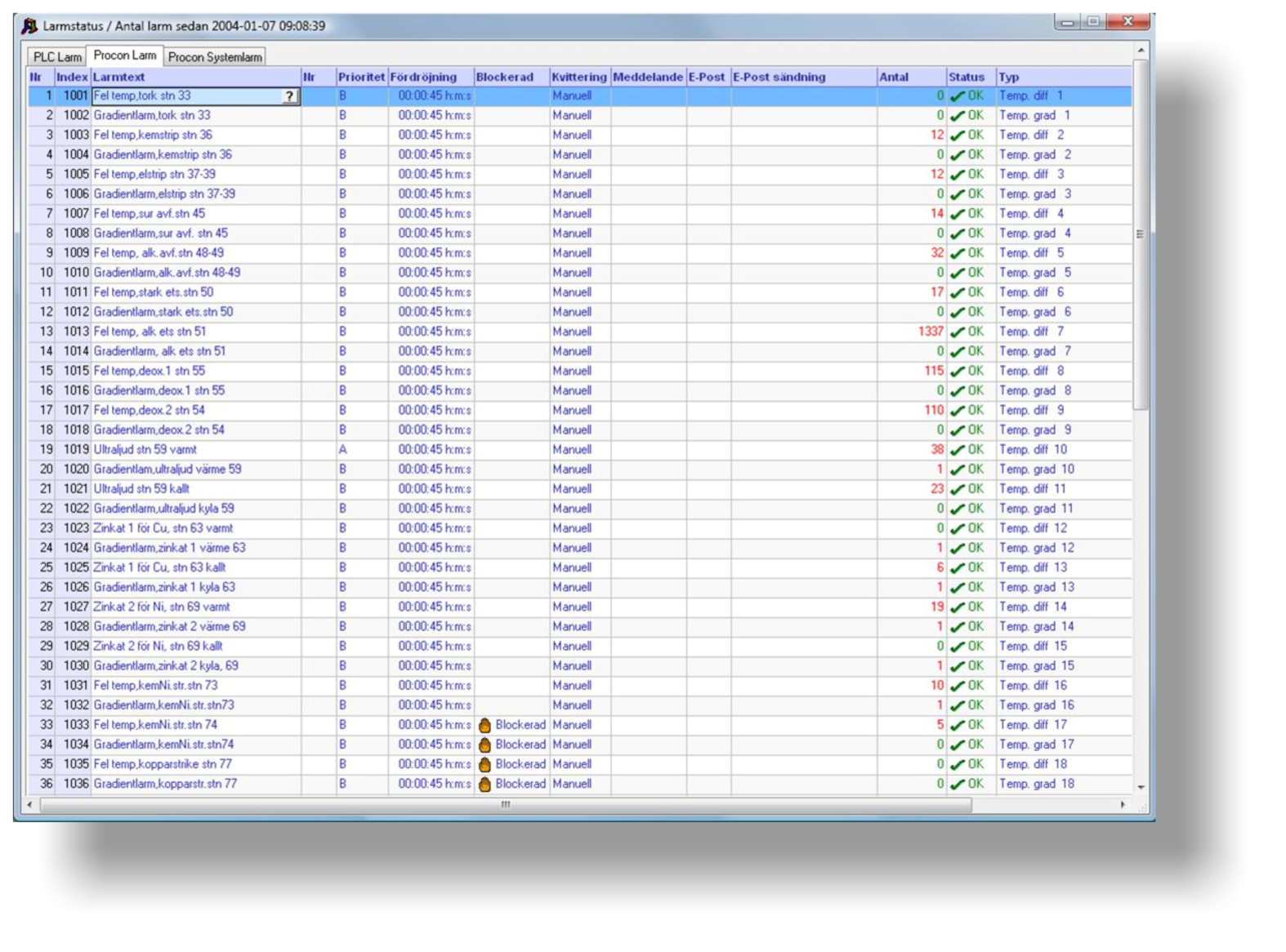 1000 larm från PLC-system.